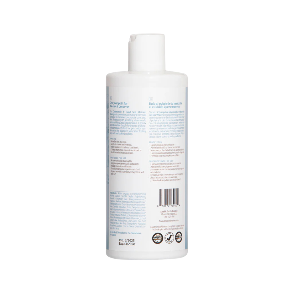 Soothe, cleanse, and rejuvenate your pet’s coat with the Anahit Pet Collective Chamomile & Dead Sea Mineral Shampoo – 16.9 oz. Infused with calming chamomile extract and revitalizing Dead Sea minerals, this gentle formula deeply cleanses while restoring softness and natural shine to your pet’s fur.